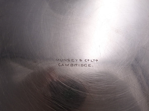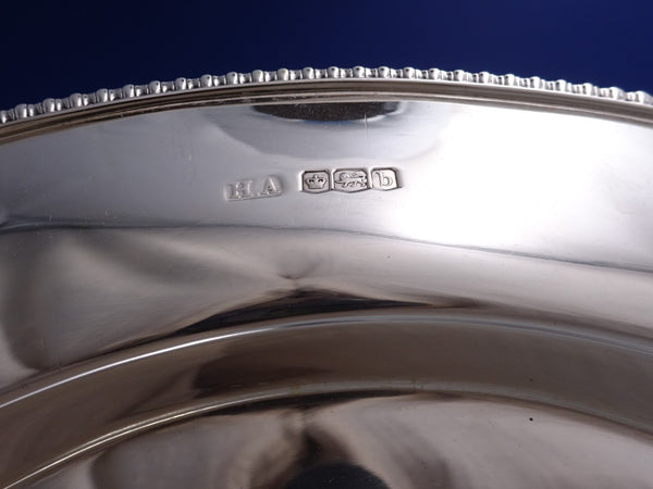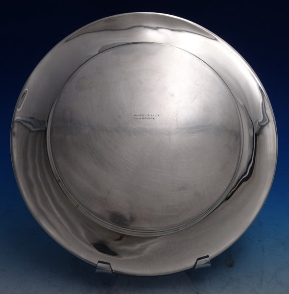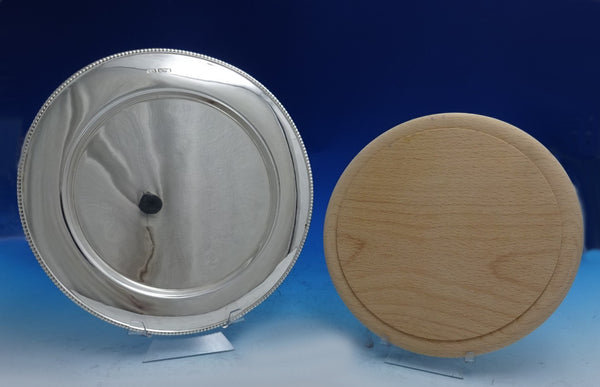Outstanding English sterling silver and challah/cheese board retailed by Munsey and Co Ltd. of Cambridge (maker unknown). This piece measures 3/4" tall x 11 1/4" in diameter and weighs 18.4 troy ounces (without wood). It is not monogrammed and is in good estate condition as shown in the photos. Remarkable piece!