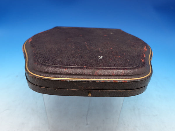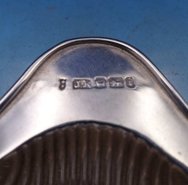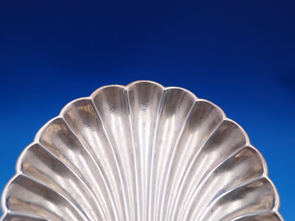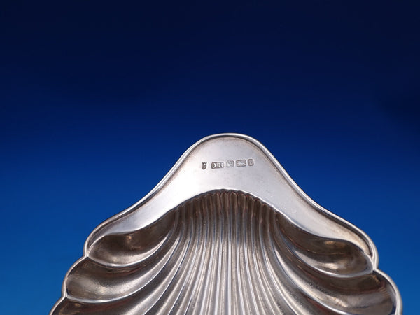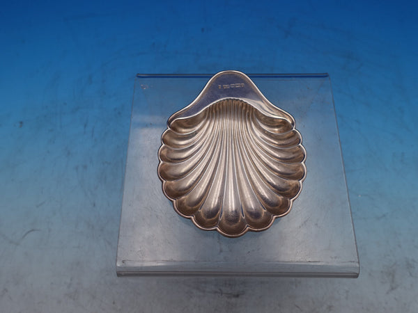 English sterling silver 4-piece Pate' (or Butter) Set in original fitted box. This set includes Two pointed knives measuring 4 1/2" and two shell shaped dishes measuring 3 3/4" x 3" . The total weight of the silver of this set is 2.7 troy ounces.
