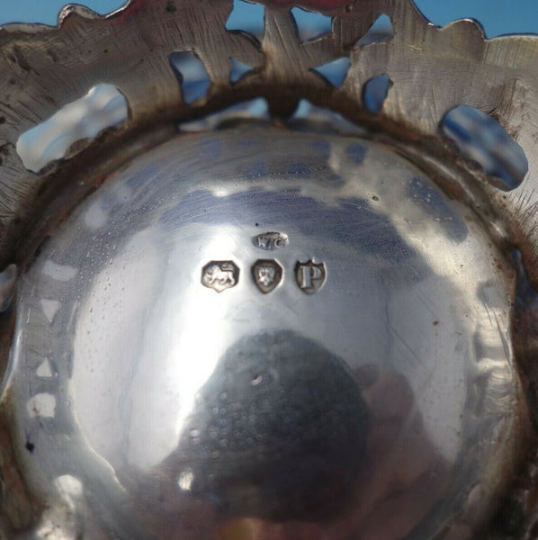 Lovely English sterling silver sweet meat dish pair featuring bows and flowers (maker unknown). The pieces measure 1 1/2" tall x 5" and together weigh 6.8 troy ounces. They are not monogrammed and are in good vintage condition. Spectacular!