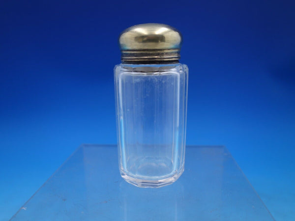 Lovely English sterling silver and glass dresser jar with vermeil top (all goldwashed) from London, England 1896. This piece measures 3 5/8" x 1 1/2". It is monogrammed on top of the lid (monos vary), and is in good vintage condition. Wonderful!