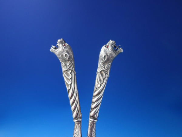 Exceptional English Victorian sterling Silver Glove stretcher all-silver with 3-D Lion or Leopard handle with rose cut garnet eyes, by Adie Lovekin, Birmingham 1899. This piece measures 7" in length. It is not monogrammed and is