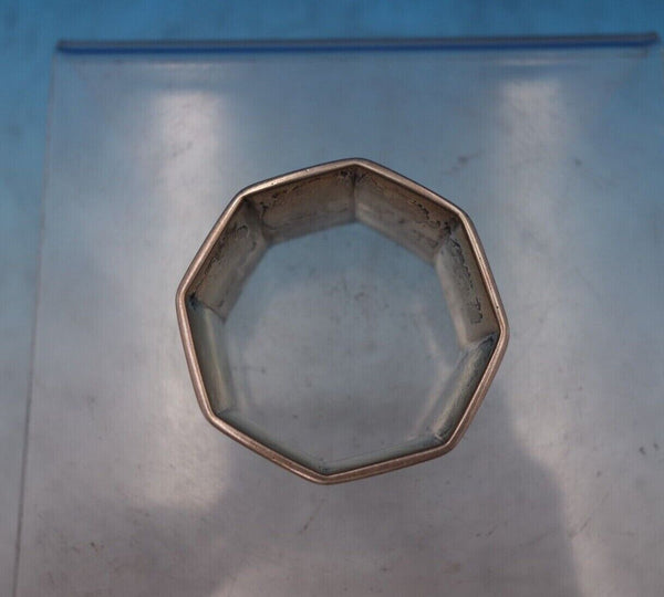 Outstanding English Victorian sterling silver napkin ring made in London circa 1859 (maker unknown). It is eight-sided and is beautifully engraved. This napkin ring measures 1 3/4" x 1 1/4" and weighs .82 troy ounces. It is not monogrammed and is in good vintage condition as shown in the photos.