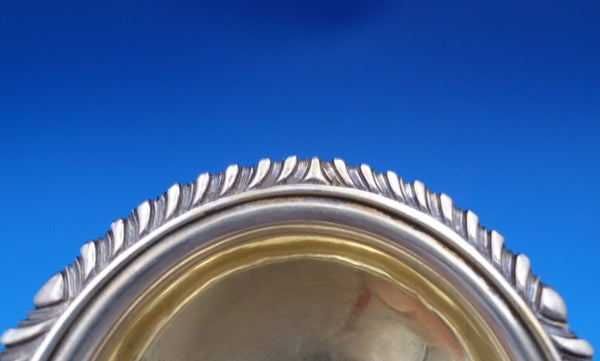Wonderful English Victorian sterling silver master salt dip two-piece set, made in London circa 1854 (maker unknown). The pieces feature gadroon borders and kings feet. The dips measure 2" tall x 3 1/4" and weigh 4 troy ounces. They are not monogrammed and are in good estate condition as shown. Terrific set!