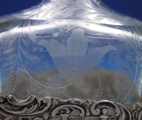 Gorgeous European .800 silver overlay with cut crystal decanter (maker unknown). This piece features a 3-D child on the top with men and women on the base. This decanter measures 10 1/2" tall x 4". It is not monogrammed and is in good vintage condition. Outstanding!