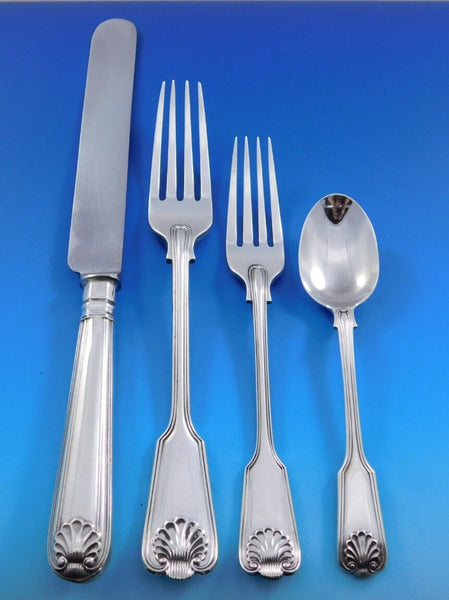 Exquisite Dinner Size Fiddle Thread Shell by James Robinson handmade sterling silver Flatware set, 48 pieces. This set includes: