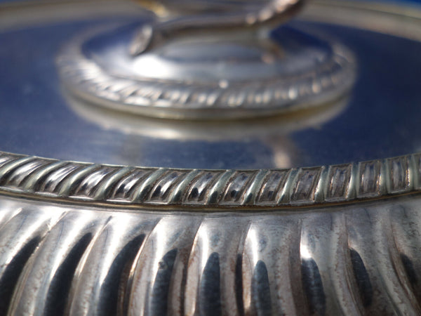 by WH silverplate Covered vegetable dish with removable handle, measuring 12" x 9". Marked "Hard Soldered". It is not monogrammed and is in good vintage