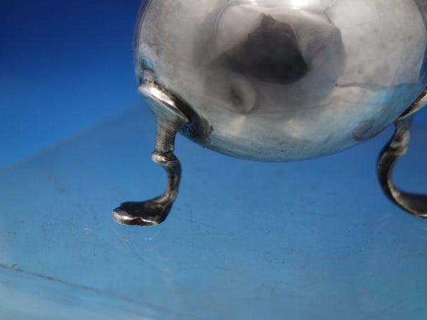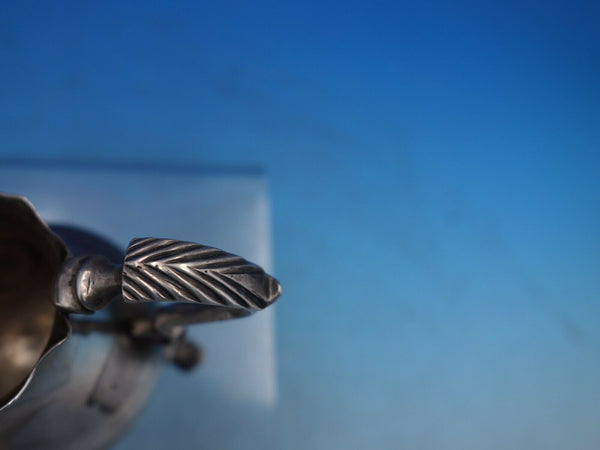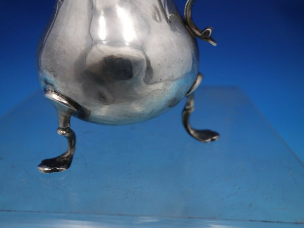 English Georgian silver creamer London circa 1760's - 1770's. It measures 3 7/8" x 3 5/8" with handle and weighs 2.78 troy ounces. It is not monogrammed and is in good vintage condition. Wonderful piece!