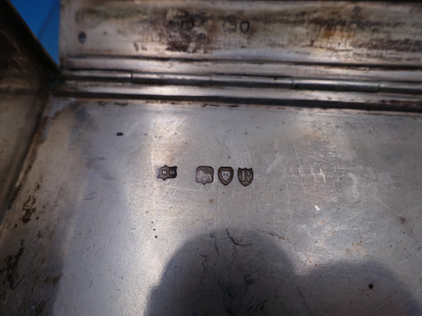 Wonderful Mappin and Webb English Victorian sterling silver box with double hinge lid that opens flat, made in London circa 1892. This box measures 5" (l) x 3" (w) x 1 1/8" (h), and weighs 7.83 troy ounces. It is not monogrammed and is in good estate condition as shown in the photos. Terrific!
