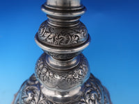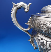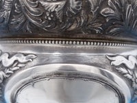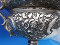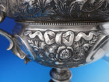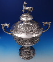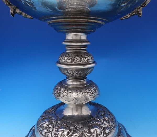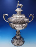 The trophy measures 25" tall x 17 1/2" x 11" and weighs 166 troy ounces. It is not monogrammed and is in good estate condition as shown in the photos. Extraordinary piece!