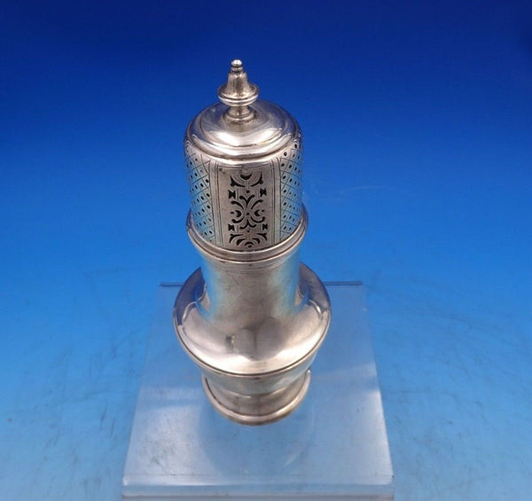 Beautiful Munsey and Co Ltd Cambridge English estate sterling silver muffineer fancy pierced and engraved, circa 1921. This piece measures 7 1/4" tall and weighs 8.01 troy ounces. It is not monogrammed and is in good vintage condition. Outstanding!
