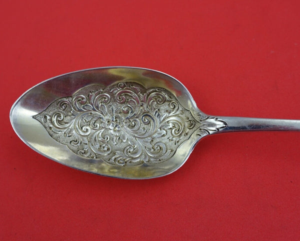 English Georgian sterling silver Serving Spoon 9" with chased handle and bowl by Robert Peppin, London, circa 1817. It is monogrammed (mons vary) and is in excellent condition.