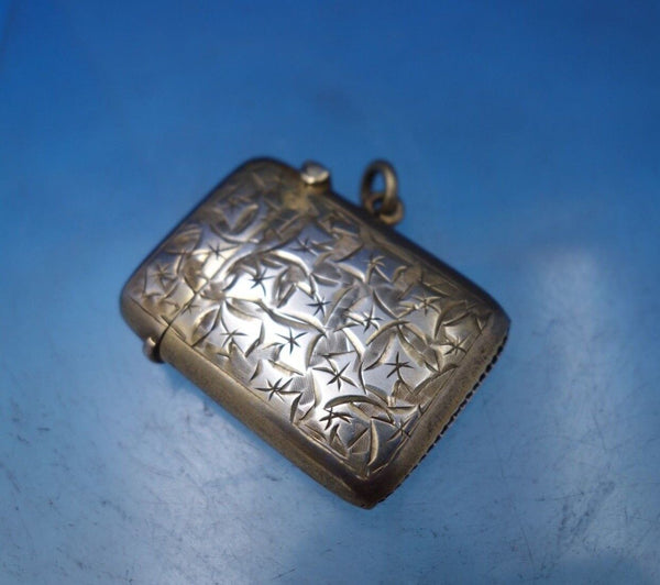 Wonderful Smith and Bartlam sterling silver vermeil match safe featuring engraved ivy on the front and back. This piece was made in Birmingham, England, circa 1910, and is for a chatelaine. The piece measures 1 3/4" x 1 1/4". It is not monogrammed and is in good vintage condition. Fantastic!