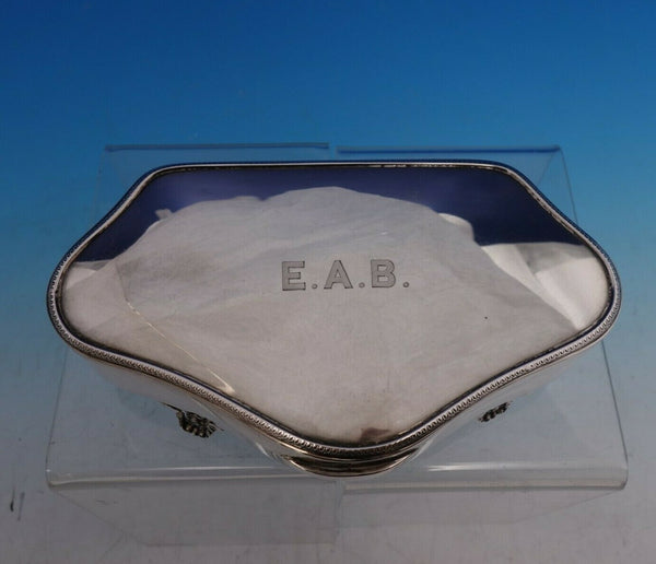 Lovely Watson and Hull English sterling silver footed jewelry box with liner. This box measures 2 1/4" tall x 7" x 4" and weighs 15 troy ounces. It is monogrammed (see photos) and is in good vintage condition with some wear to the liner as can be expected with age. Beautiful piece!
