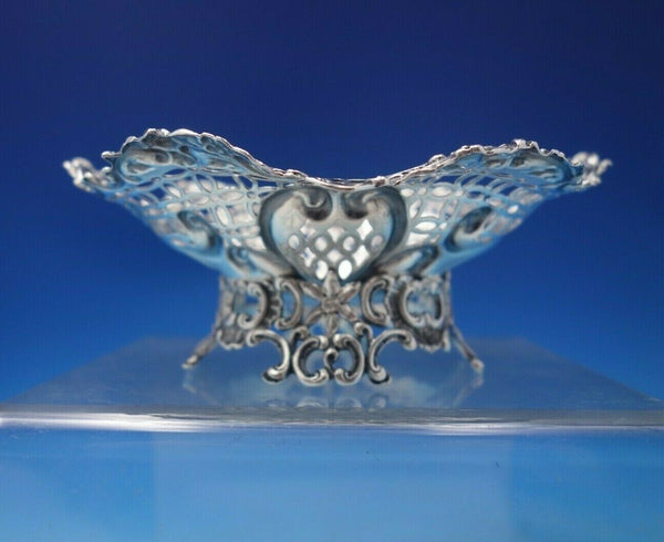 Wonderful William Comyns English Victorian sterling silver candy dish made in London circa 1890. This piece features a cast footed base and pierced ribbons. The dish measures 2" tall x 5" and weighs 3.65 troy ounces. It is not monogrammed and is in good vintage condition. Terrific!