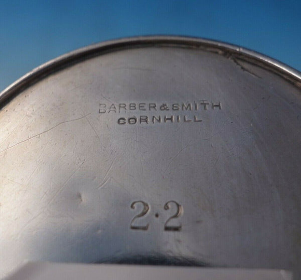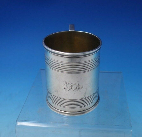 Charming William Evans child's cup marked #22 retailed by Barber and Smith Cornhill. This piece was made in London circa 1866. The cup measures 3 1/8" tall x 3 3/4" (with handle) and weighs 4.8 troy ounces. It is monogrammed (see photos) and is in good vintage condition. Wonderful!