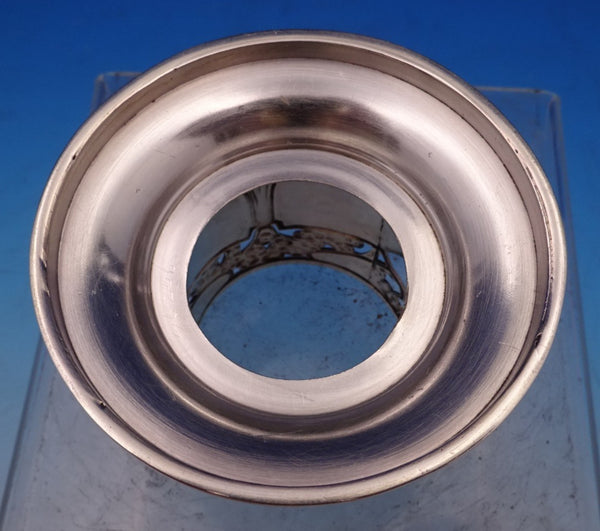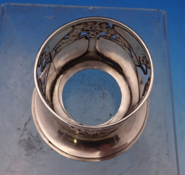 Wonderful William Hutton and Sons English Victorian Art Nouveau sterling silver base / holder pierced with flowers (no insert). It was made in London circa 1899. This holder measures 2 1/4" tall, with 1 7/8" diameter opening, and 3" diameter (base), and weighs 2.3 troy ounces.