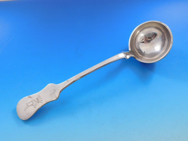 Overall good vintage condition. Some wear to the steel blades and tines, as shown in photos. The pieces have matching "DT" monogram with crown. Fabulous early set!