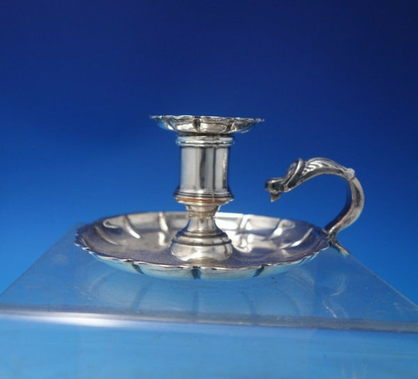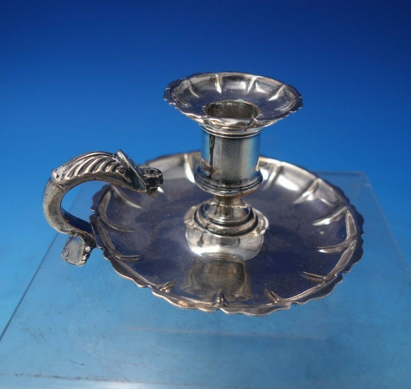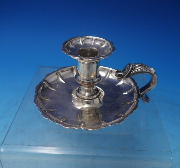 Wonderful silver on copper chamber stick (maker unknown). This piece measures 2 1/4" tall x 4". It is not monogrammed and is in good vintage condition as shown in the photos. Terrific!