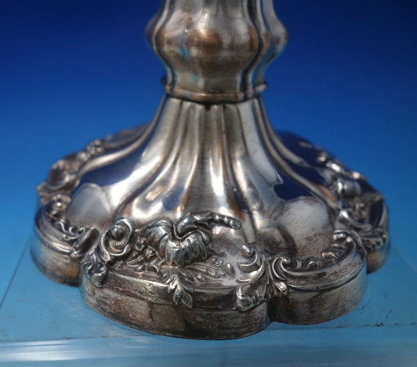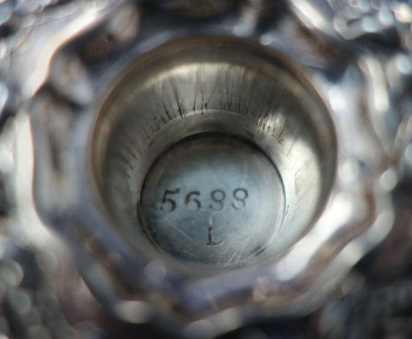 Wonderful silverplate candlestick with floral motif marked #5688, circa 1925 (maker unknown). This candlestick measures 10 1/4" tall x 2 1/4" (base). It is not monogrammed and is in good vintage condition as shown in the photos. Beautiful!