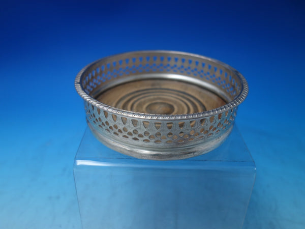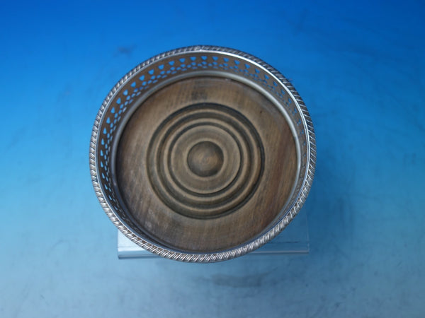 Wonderful silverplate and wood coaster in the Gadroon pattern circa 1920 (maker unknown, no marks on piece). The coaster measures 1 1/2" tall x 5" in diameter. It is not monogrammed and in good vintage condition with some surface scratches and wear to the wood, as can be expected with age.