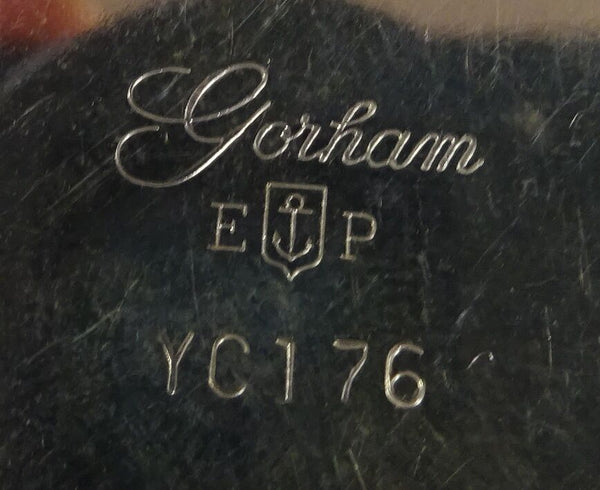 Strasbourg by Gorham silverplate nut dish.  The piece is marked with #YC176, and it measures 3 7/8" long x 2 1/2" wide x 1 1/8" tall.  It is not monogrammed and is in very good, very clean condition, with minor surface scratches as expected.