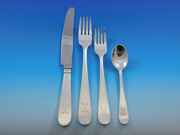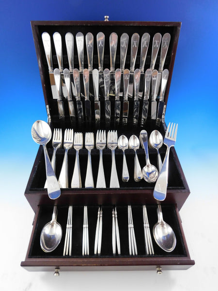 Monumental rare Scandinavian Modern "Atelier Borgila" sterling silver Flatware set, 122 pieces. The quality is outstanding and the pieces are exceptionally heavy. This set includes:12 Dinner Size Knives, 9 1/2" 12 Dinner Size Forks, 7 7/8" (heavy 2.4 ozt each) 12 Luncheon Knives, 8 1/4" 12 Luncheon/Dessert Forks, 7" 12 Teaspoons, 5 1/2" 12 Place Soup Spoons, 7" 12 Flat Handle Butter Spreaders, 5 1/2" (heavy 1.8 ozt each) 12 Large Dinner Spoons, 8" 12 Fish Forks, 7 3/4" (heavy 2.5 ozt each) 12 Fish Knives, all-sterling, 8" 1 Large Serving Spoon, 10 1/8" (heavy 5 ozt) 1 Large Serving Fork, 10" (heavy 5 ozt) Includes bonus brand new storage chest - styles vary.