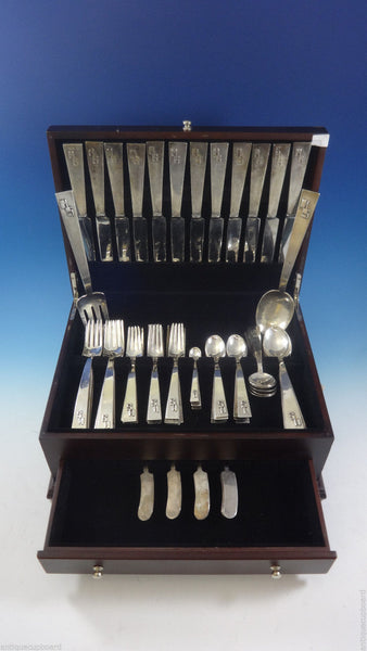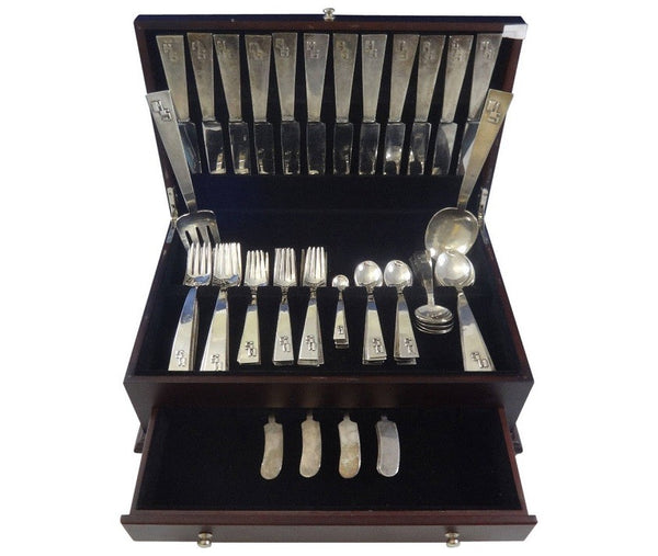 sterling silver Mid-Century Modern flatware dinner size set, 98 pieces. This set includes:
