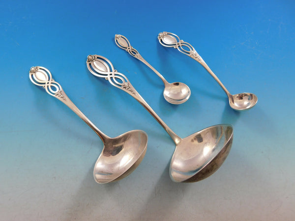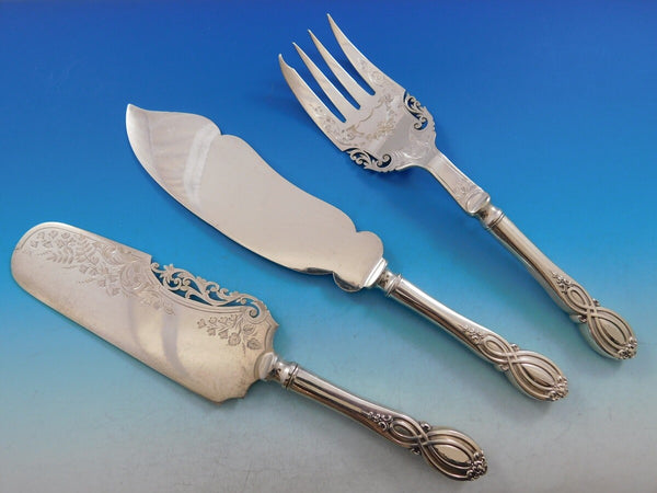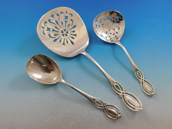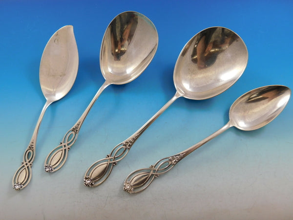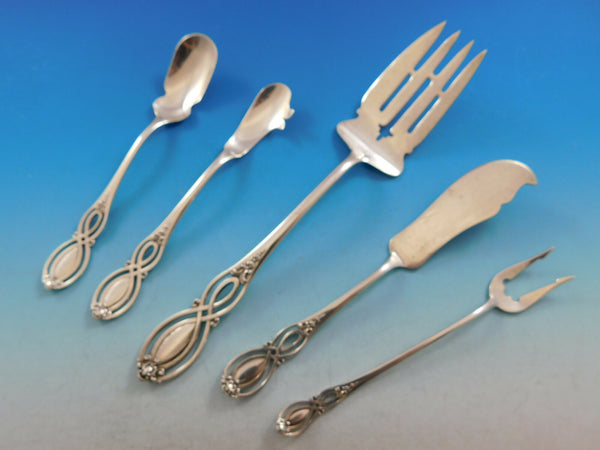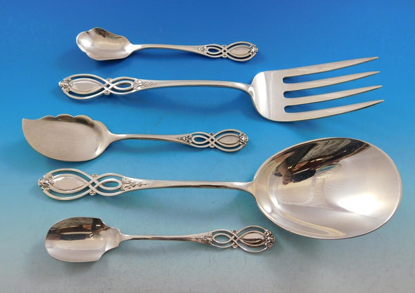 Monumental rare Chippendale Old by Alvin, circa 1900, Sterling Silver Flatware set - 206 pieces. This pattern features a unique pierced handle and fabulous serving pieces. This set includes: