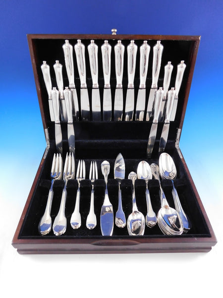 Outstanding Art Deco Puiforcat sterling silver Flatware set, 56 pieces. This set includes: