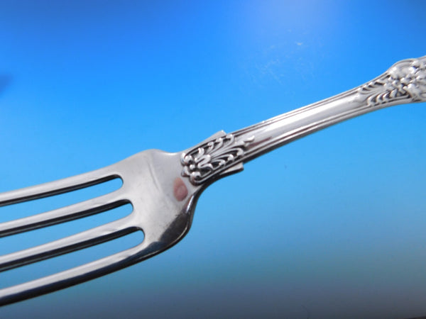 Patterns similar to our English King were first used in France and England late in the eighteenth century and have remained among the most popular styles for>flatware today, in both Europe and America. Tiffany Co. first made its own version of English King in 1885. It harmonizes with any eighteenth-century-inspired style neo-Georgian, Colonial, Louis XVI, Sheraton, Chippendale, Adam or Hepplewhite. The rich, intricate decoration of Tiffany's English King pattern reflects the luxurious entertainments given during the latter part of the eighteenth century and will enhance and give a sense of occasion to present-day settings.