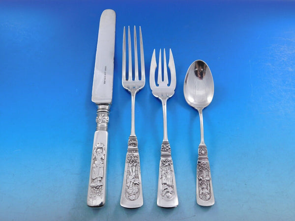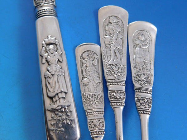 The academic nature in which designer Antione Heller looked to the past for inspiration also stems from the Beaux Arts movement. This multi-motif, figural pattern features French figures in varying food-related themes and was introduced by Gorham in the year 1882.