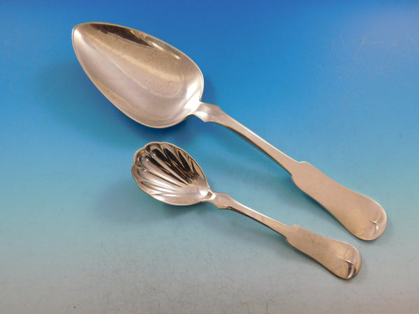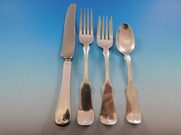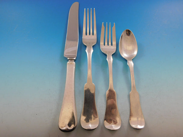 Incredible monumental Grandma Milford by Porter Blanchard sterling silver Flatware set with fiddle shaped handle, 124 pieces. This scarce set is handmade and truly a work of art. This set includes: