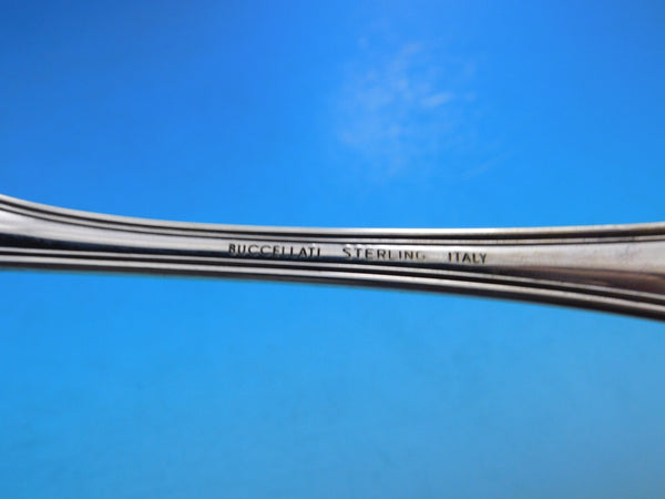 Simple elegance, handcrafted from sterling silver. Made in Italy by the 18th-century house of Buccellati, whose artisans emphasize timeless style, integrity of materials, and pleasure of use when designing each piece. Buccellati tableware is delicately crafted, and each detail is impeccable. Handcrafted in Italy, the Laura pattern features a classic style with a single carved leaf detailing and a flowing channel the length of the handle..
