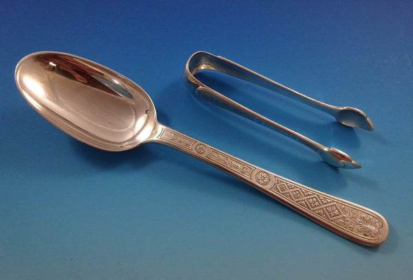 Excellent condition, matching scroll monogram on the reverse. This set will be beautifully professionally polished prior to