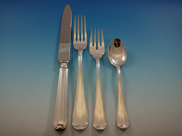 Monumental Dinner Size Maurizano by Schiavon Italy (Retailed by Fina) Italian Sterling Silver Flatware set - 129 pieces. This set includes: