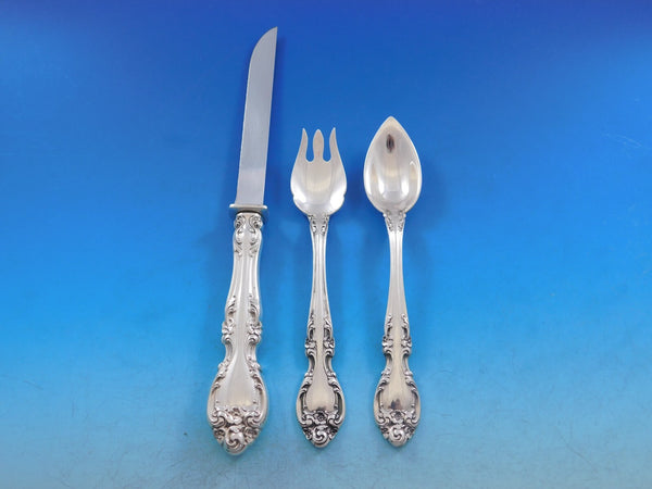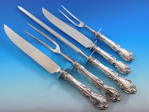 12 Teaspoons, 5 7/8"12 Cream Soup Spoons, 6 1/4"12 Place Soup Spoons, 6 3/4"12 Flat Handle Butter Spreaders, 5 3/4"12 Cocktail Forks, 5 1/4"12 Iced Tea Spoons, 7 5/8"12 Demitasse Spoons, 4 1/4"12 Ice Cream Forks, 5 1/2"12 Grapefruit Spoons, 5 3/4"12 Steak Knives, 8 3/4"4 Salt Spoons, 2 3/4"1 Gravy Ladle, 6 1/2"2 Serving Spoons, 8 1/2"1 Cold Meat Fork, 7 7/8"1 Sugar Spoon, 6 1/8"1 Flat Handle Master Butter, 7"1 Pickle Fork, 5 3/4"1 Lemon Fork, 4 1/2"1 Tomato Server, 8"1 Salad Serving Set, all-sterling, 8 7/8"1 Sauce Ladle, 5 5/8"1 Nut Spoon, 4 3/4"1 Jelly Server, 6 1/8"1 Steak Carving Set, 2-pc, 9 3/4" 8 3/4"1 Roast Carving Set, 3 piece1 Angel Food Cake Breaker, 10 3/4"1 Sugar Tong, 4"1 Pastry Server w/stainless blade, 10"1 Cheese Server w/stainless blade, 6 5/8"