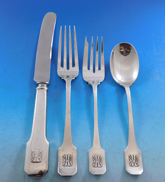 condition (except for the carving sets, as noted), with applied "DHR" monogram on all pieces. Upon request of the buyer, we can remove the applied monogram, if desired (it can be fairly easily and successfully removed by our silversmith by being popped off). This set will be beautifully