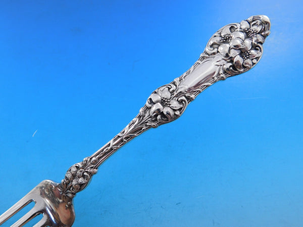 Gorgeous Dinner and Luncheon Size Old Orange Blossom by Alvin sterling silver Flatware set, 114 pieces. The dinner fork and knife in this pattern are large and impressive. This set includes: