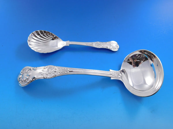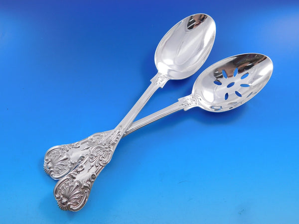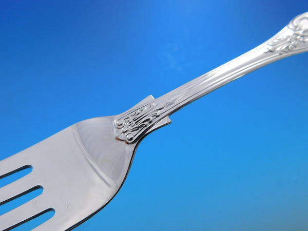 The Queens pattern was introduced in about 1825, in the reign of George IV. It features graceful shells, foliate scrolls, and flowers. This pattern was formerly made by C.J. Vander of London, and is now a Wallace pattern. This elegant silver will