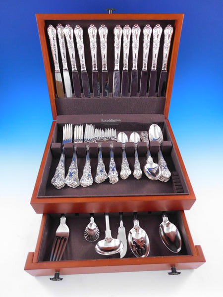 Exceptional Queens by Wallace sterling silver dinner size Flatware set, 66 pieces. This set