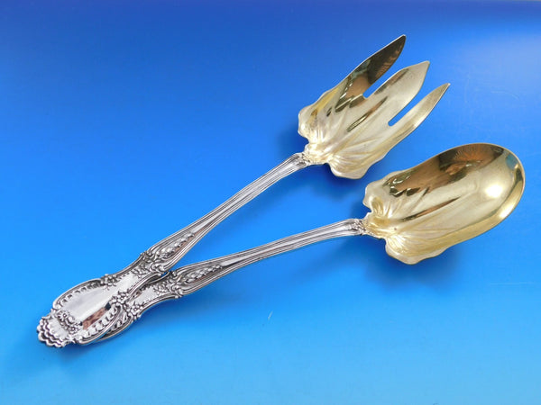 The pattern Richelieu by Tiffany Co. was patented in 1892. It is assumed this pattern is named after Louis-Francois-Armond de Vignerot du Plessis, who invented mayonnaise and the sauce Richelieu is named after. The pattern features C-scrolls bordering the front and back, with an inner shell border. Featuring flowers on the handle with a shell at the tip.
