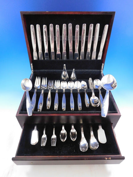 SWEDISH MODERN BY ALLAN ADLER hand wrought sterling silver Flatware set, 124 pieces. This set includes: