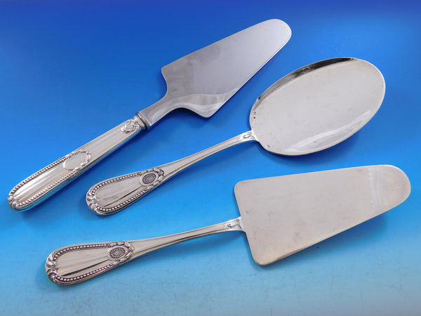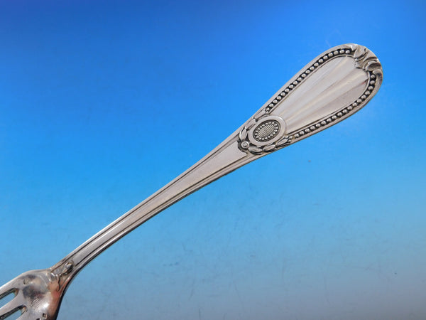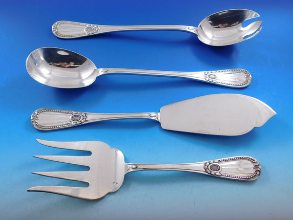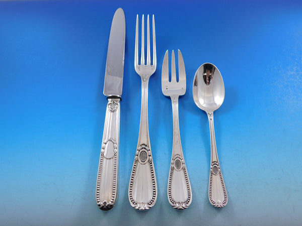 Outstanding monumental very fine Tetard Freres Perles design French sterling silver flatware set, 343 pieces. This set includes: