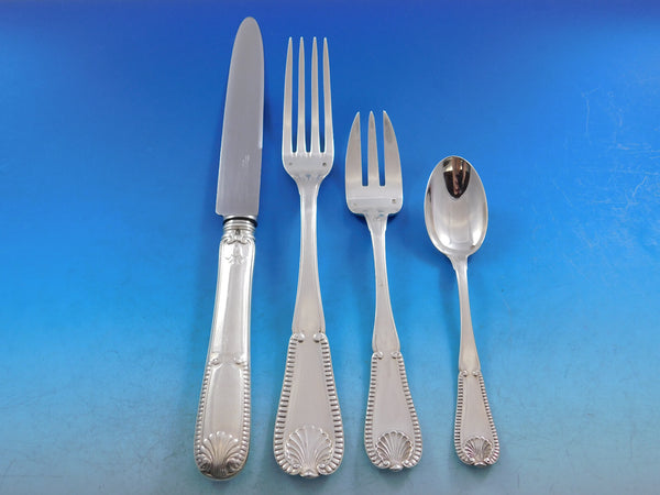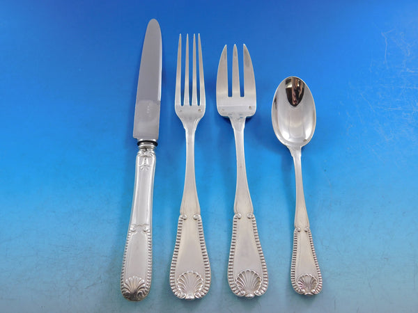 Outstanding Tetard Freres Shell Bead French 950 silver flatware set, 128 pieces. This set includes: