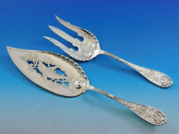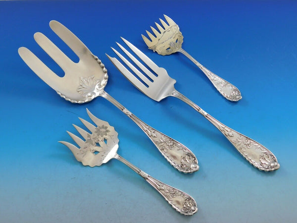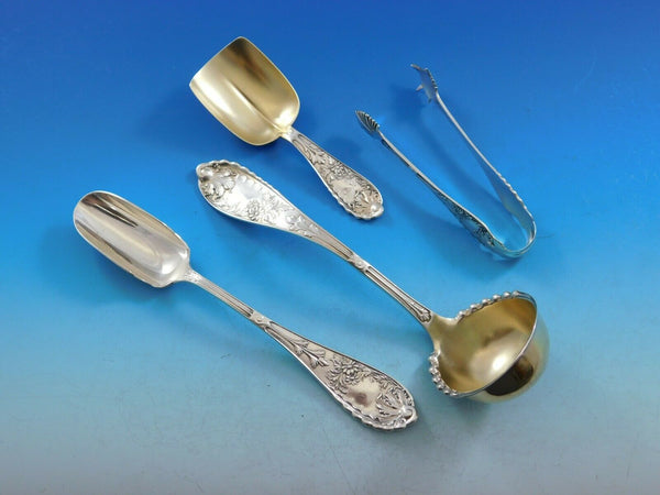 Superb "Undine" by Wood Hughes, New York, circa 1850, sterling silver Flatware set - 69 pieces. This was Wood Hughes's first silver pattern and it is a design masterpiece. This scarce multi-motif Art Nouveau service displays and intricate floral detailing and sea motifs. We have never even seen one single fork in this pattern! This rare service includes:
