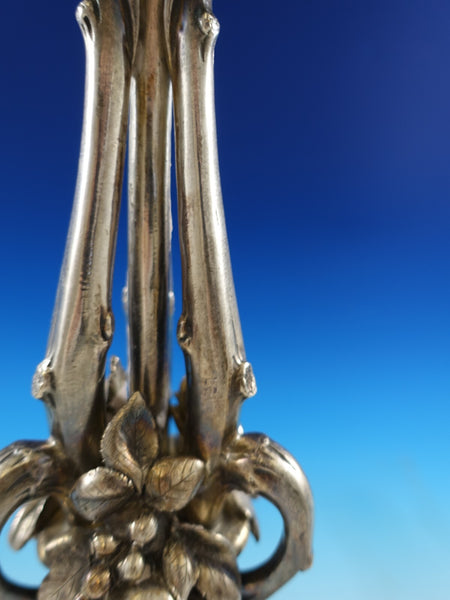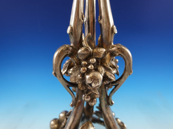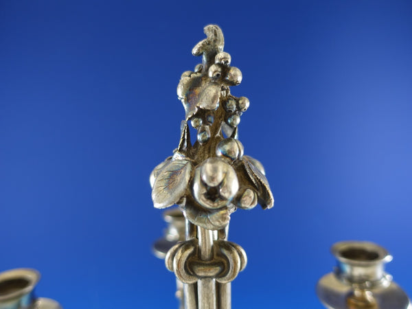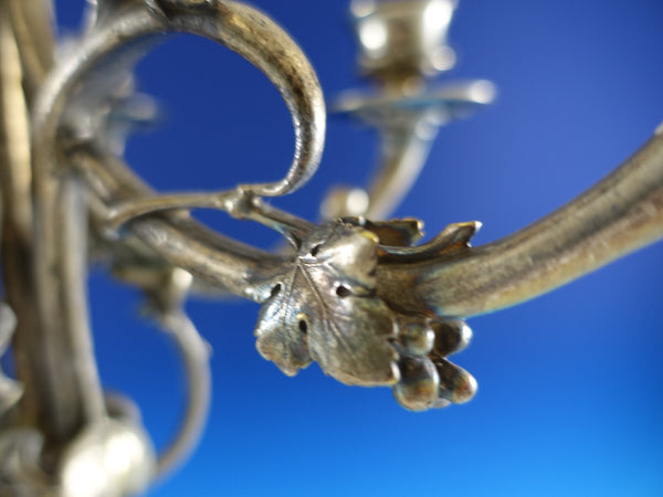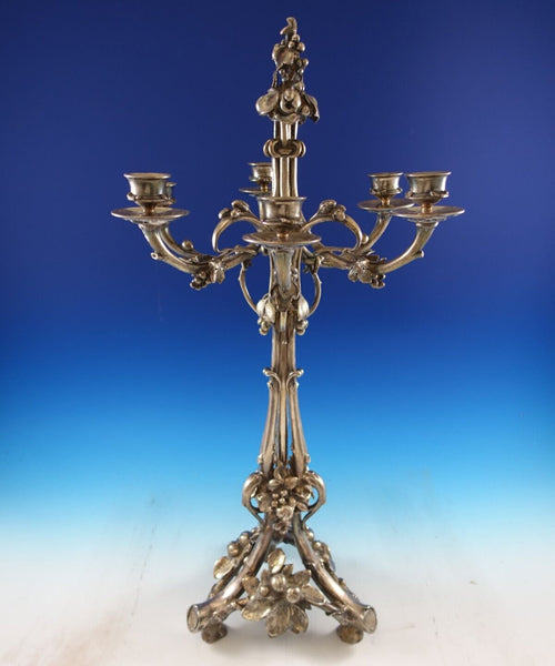 Gorgeous Christofle silverplate candelabra with fruit motif. This is a very heavy piece, measuring 24 1/4" x 12". It is not monogrammed and is in good estate condition as shown in the photos. Remarkable!