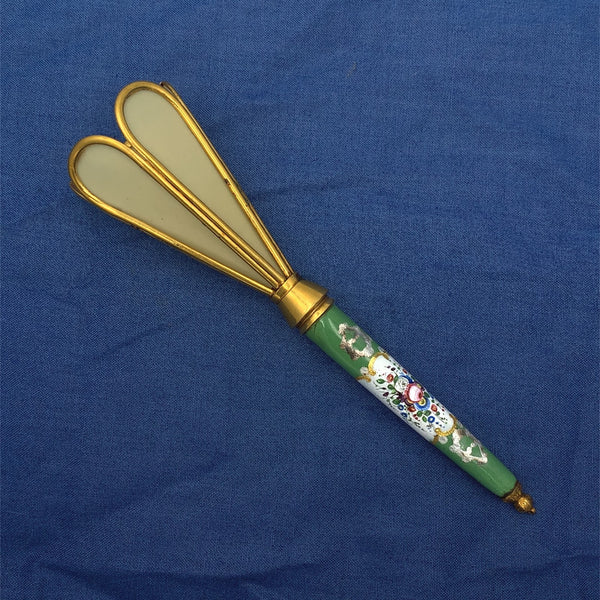 Tussie Mussie with Celluloid Five Panel Cup and Enamel Porcelain Handle #J7457