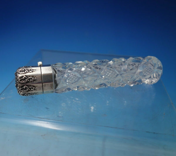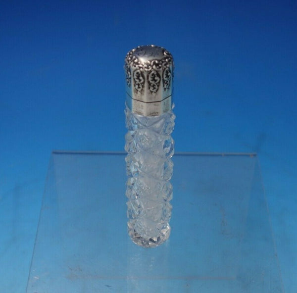 Lovely cut crystal perfume bottle with sterling silver top, circa 1920 (maker unknown). This piece measures 4 1/4". It is monogrammed (see photos), and is in good vintage condition. Pretty!