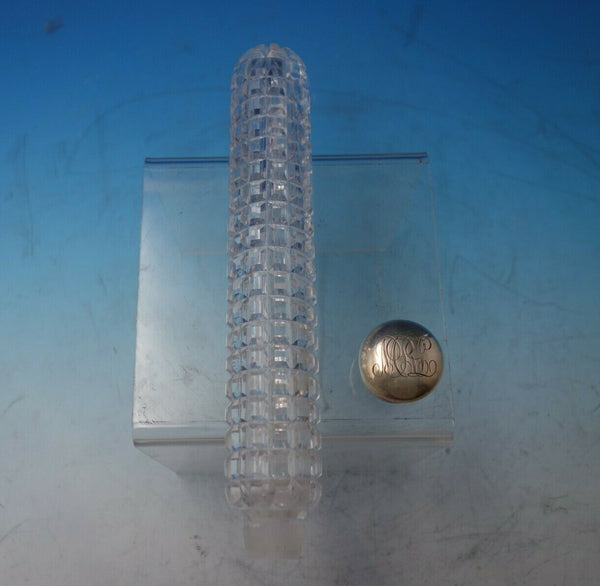 Beautiful cut crystal perfume bottle with sterling silver top, circa 1920 (maker unknown). This piece measures 8". It is monogrammed (see photos), and is in good vintage condition. Lovely!