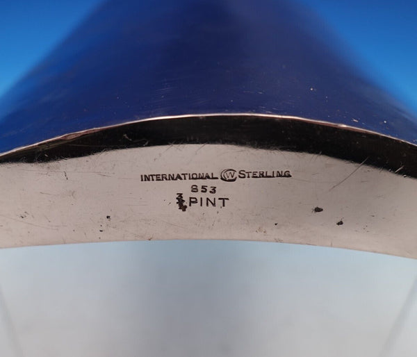 Remarkable Van Dyke by International sterling silver flask marked #853. This piece holds 3/4 pint, measures 7 1/2" x 4 1/2", and weighs 8.6 troy ounces. It is not monogrammed and is in good estate condition as shown in the photos. Exceptional!